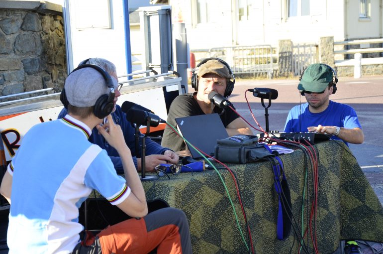 La Radio bicyclette, ce sont 2 à 3 personnes qui créent, fabriquent, produisent du contenu sur une ou plusieurs journées pour le diffuser lors d’une émission de radio bien vivante, spectaculaire et performative, avec le public et chaque fois différente.